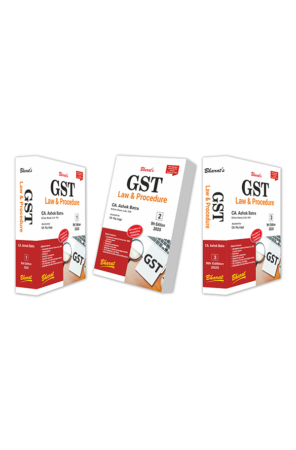 Explore the comprehensive 9th edition (2025) of G S T (Law & Procedure) by CA Ashok Batra presented in 3 volumes covering 3768 pages. A definitive guide for GST practitioners, professionals, and students. ISBN: 978-93-4808-097-4 | Published by Bharat Publishers | Flat 25% Discount + Free Shipping for a limited